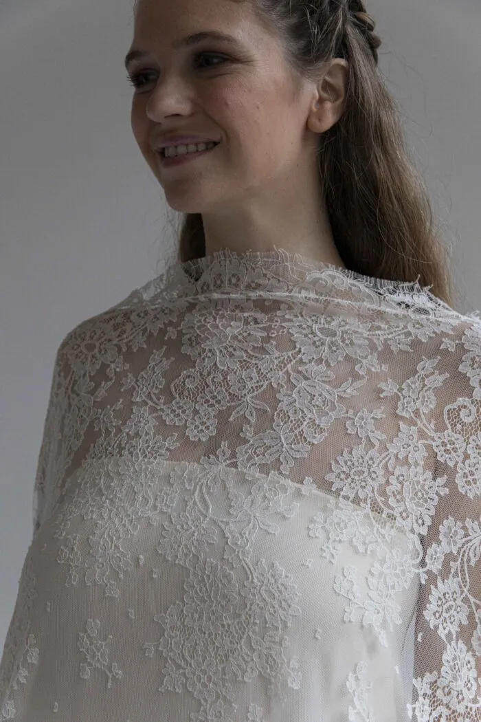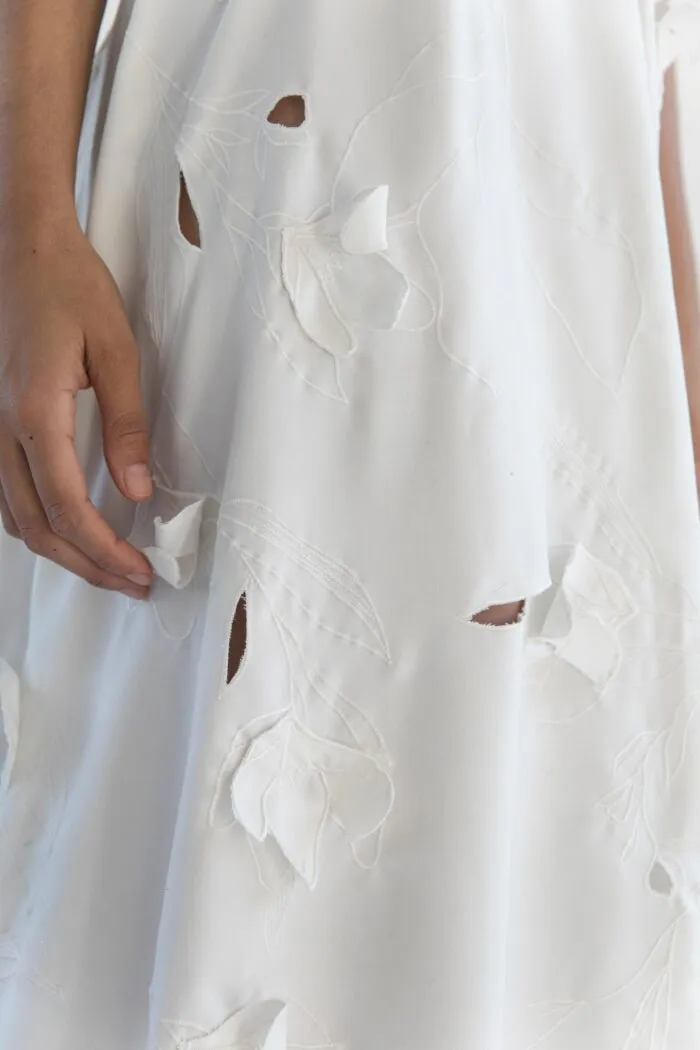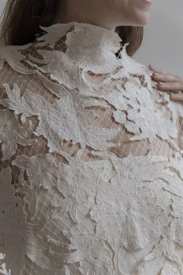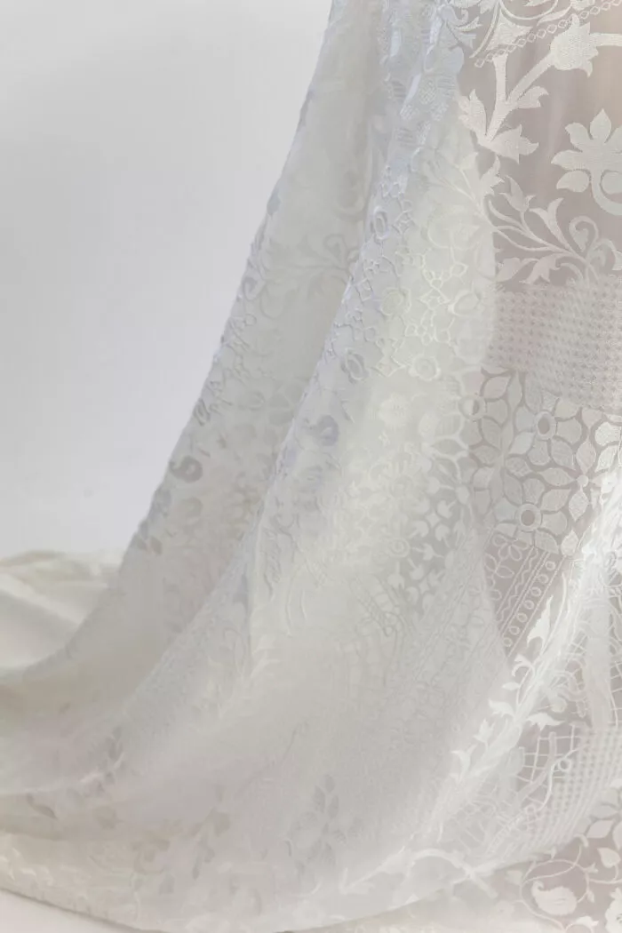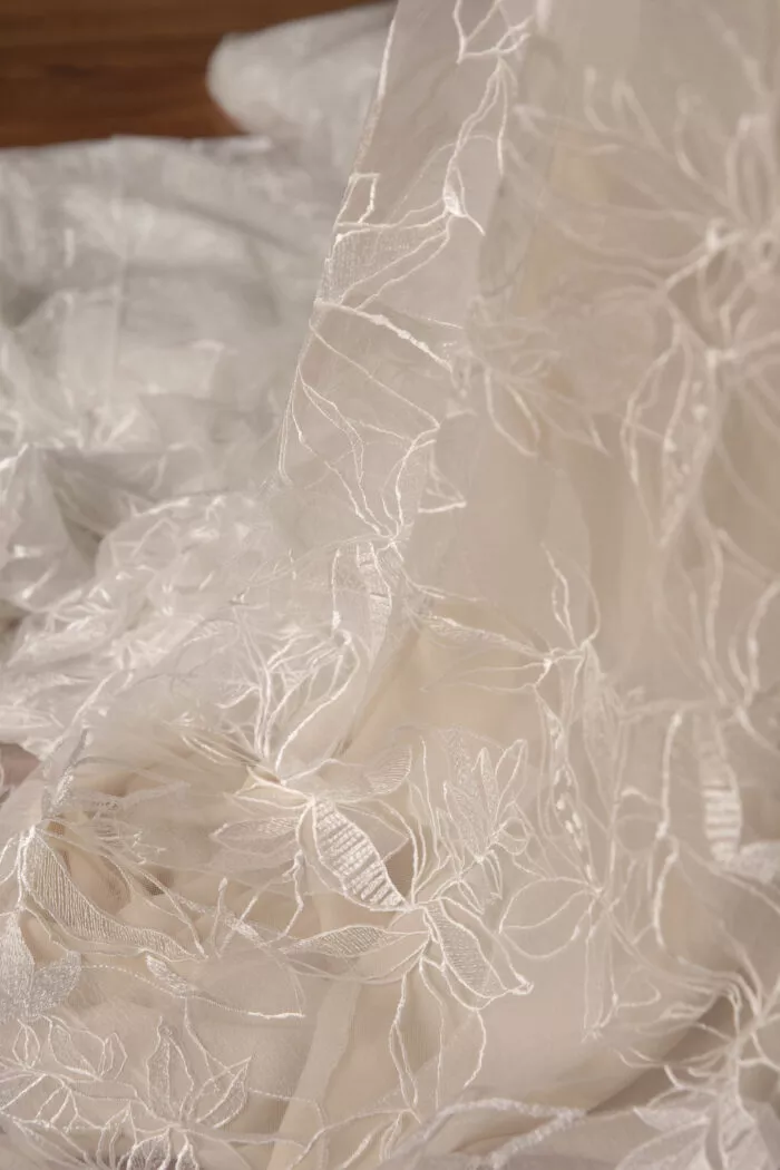 Base de redecilla hexagonal en tono natural, bordada con hilo mate de algodón que forma un diseño floral de gran escala. $ 643,60 por corte de 2.25m
