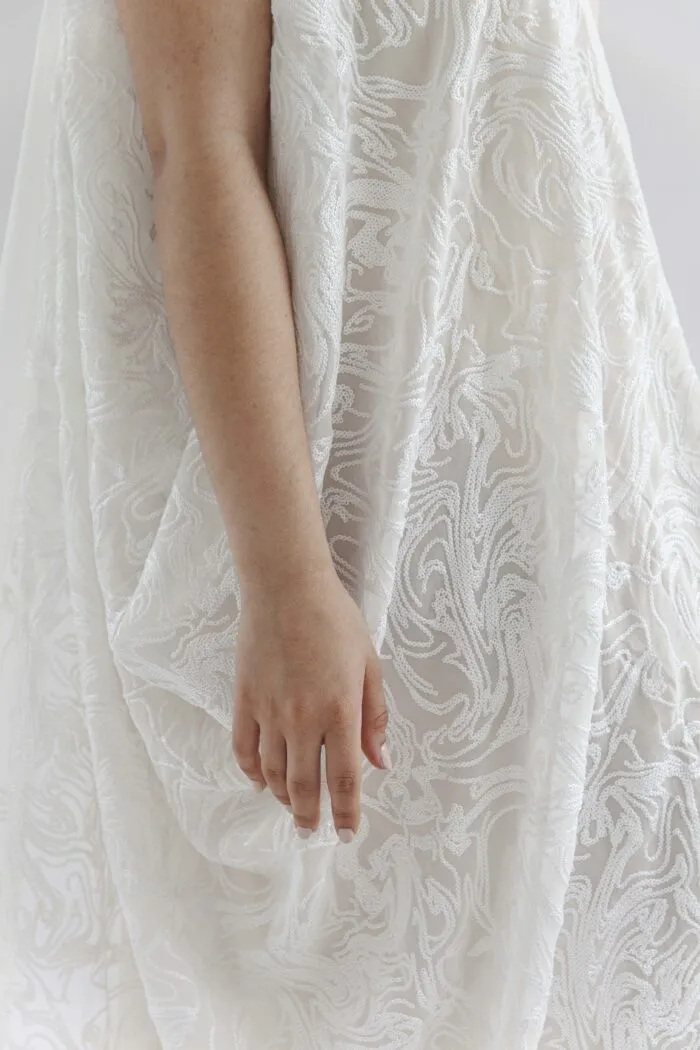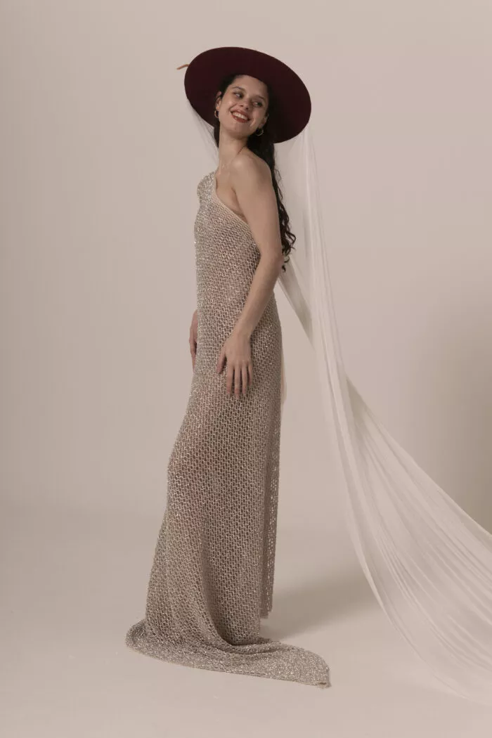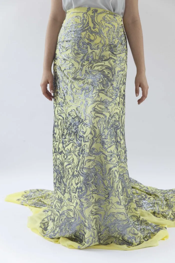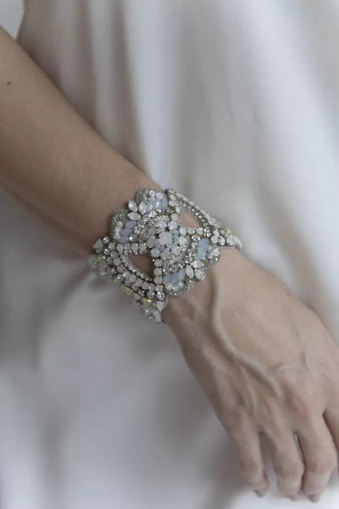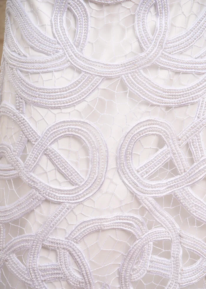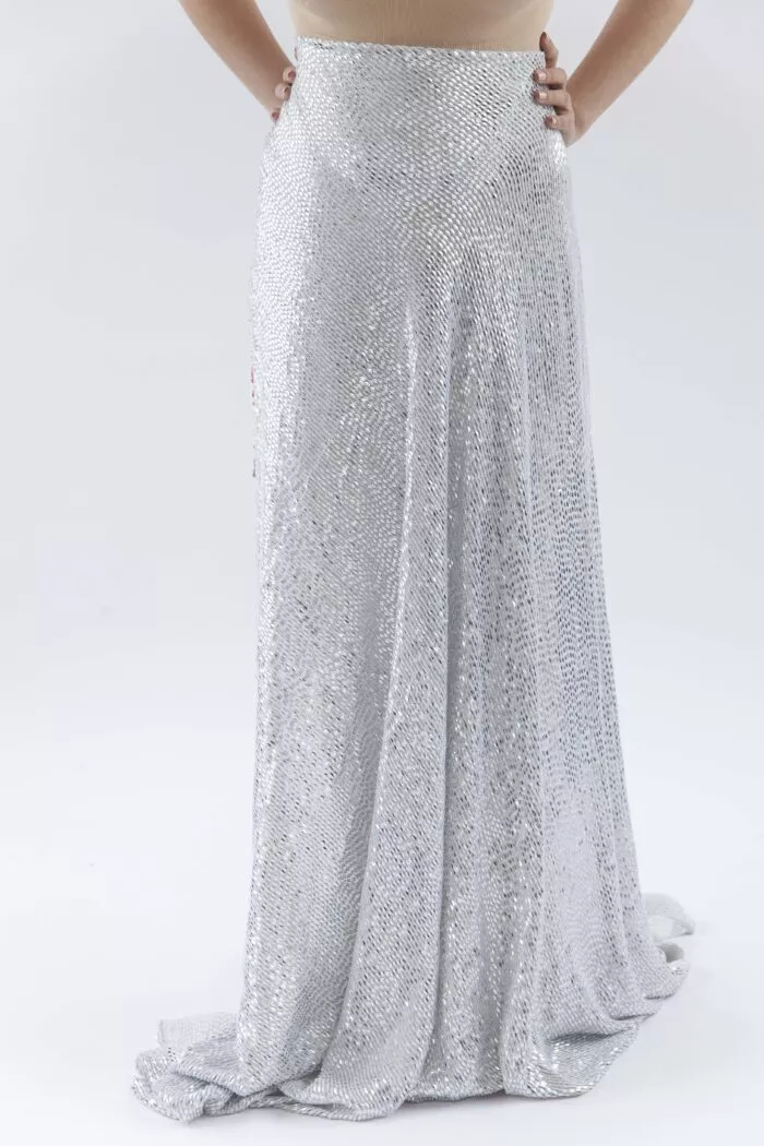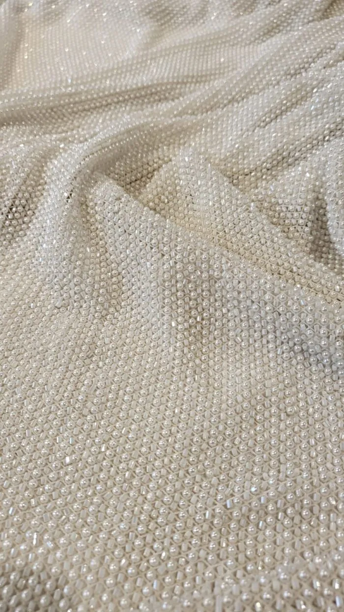 Aplique bordado con cristales en tono plata viejo – 49 cmCinto artesanal bordado con cristales facetados y mostacillas en tono plata viejo, dispuestos en un motivo floral continuo.Las piedras centrales aportan brillo intenso, mientras que el trabajo de microbordado genera textura y relieve.Con una longitud total de 49 cm, es ideal para acentuar la cintura en vestidos de novia o alta costura, aportando un acabado luminoso y sofisticado. Se vende por pieza $ 201,53 por pieza