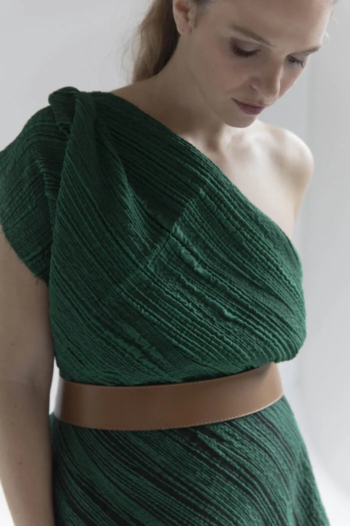 La base translúcida y flexible aporta caída fluida y acompañamiento del movimiento.